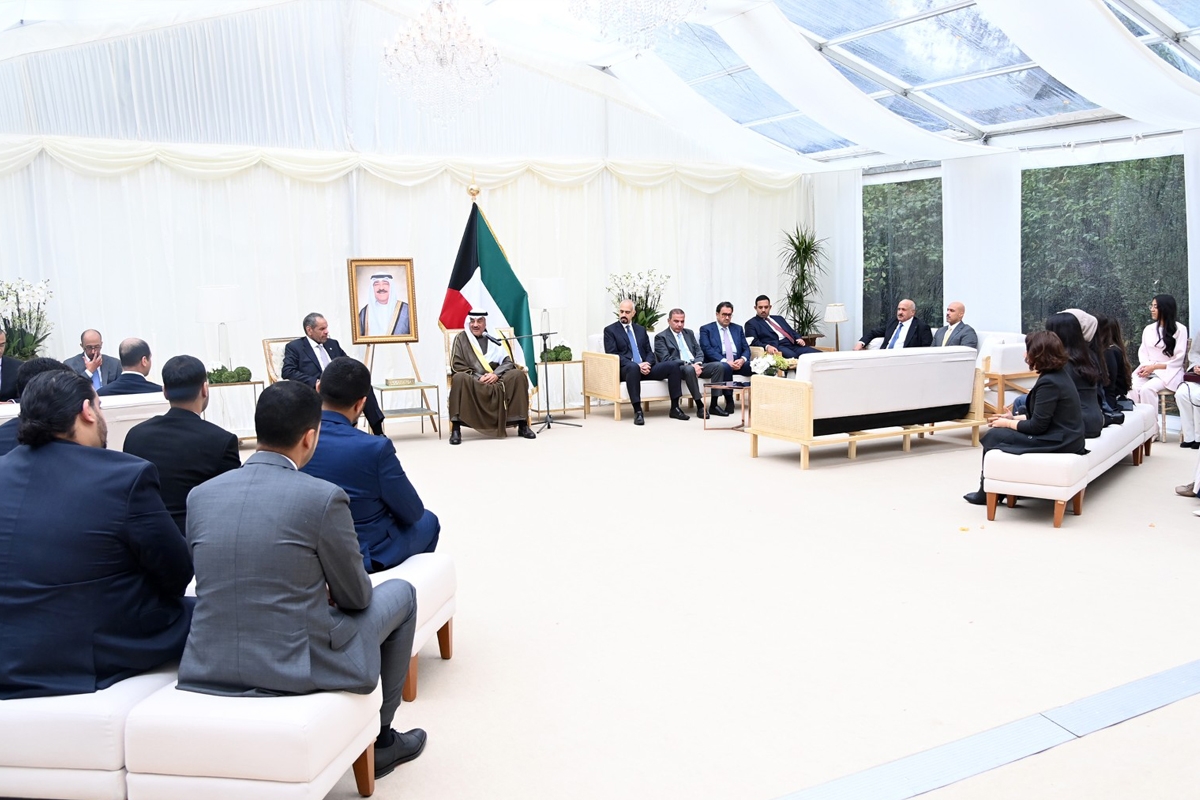 كما استقبل سموه عدداً من طلبة الكويت المتميزين الدارسين في المملكة المتحدة في مقر إقامة سفير الكويت بلندن. ونقل سموه لهم خلال اللقاء تحيات صاحب السمو، معبراً سموه عن اعتزازه بما يحققه طلبة الكويت الدارسون بالخارج من تفوق وتميز في مختلف التخصصات العلمية والأدبية، مشيداً بجهودهم وعزيمتهم وما يعكسونه من صورة مشرّفة لوطنهم العزيز في المحافل الأكاديمية، كما حثهم سموه على مواصلة الجد والاجتهاد، وبذل أقصى الجهود لتحقيق أعلى مراتب النجاح، مؤكداً أن الكويت تفتخر بأبنائها المتفوقين وتراهن على طاقاتهم وقدراتهم في بناء مستقبلها الواعد.