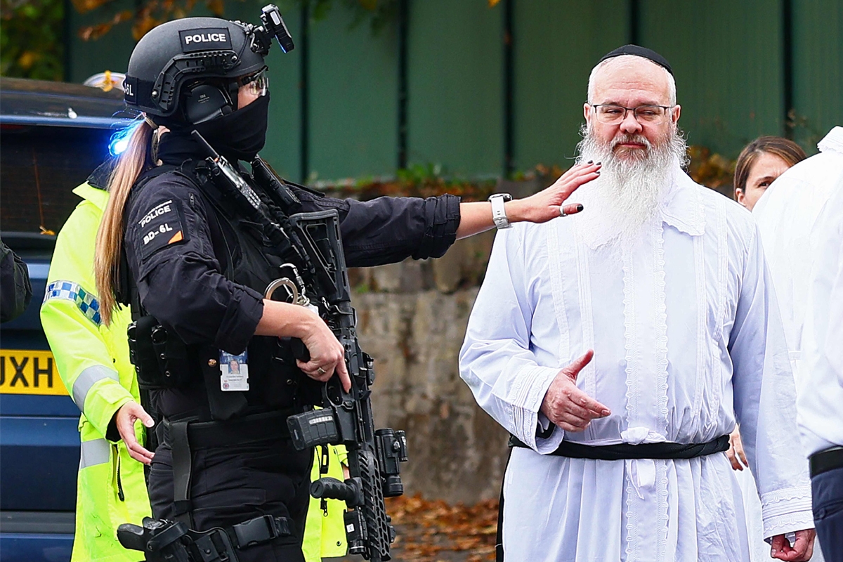 وأوضحت بلدية المدينة التي تضم إحدى أكبر الجاليات اليهودية في المملكة أن «عدداً كبيراً من المصلين في الكنيس احتُجزوا في الداخل ريثما يتم تأمين المنطقة المجاورة» قبل أن يتم إجلاؤهم.