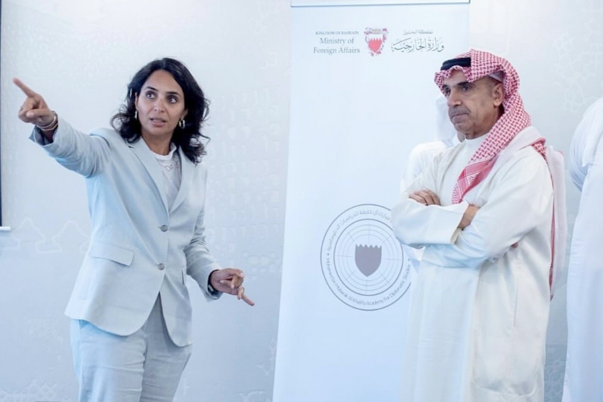 بحث مساعد وزير الخارجية لشؤون معهد سعود الناصر الدبلوماسي، السفير ناصر الصبيح، مع المديرة العامة لأكاديمية محمد بن مبارك آل خليفة للدراسات الدبلوماسية البحرينية، الشيخة منيرة آل خليفة، مجالات التعاون المشترك بين البلدين.