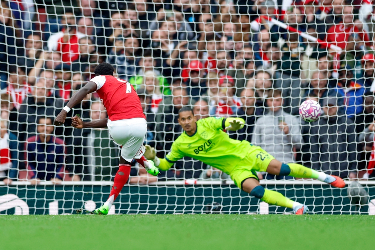 وسجل ديكلان رايس هدف السبق (38) وأضاف بوكايو ساكا الثاني (67 من ركلة جزاء)، فارتفع رصيد أرسنال إلى 16 نقطة.