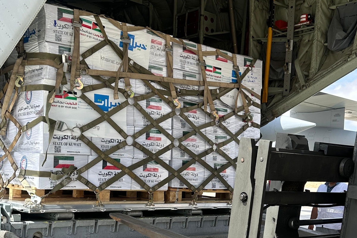 وصلت اليوم الطائرة الإغاثية الـ 16 من الجسر الجوي الكويتي الثاني ضمن الحملة الإنسانية «الكويت بجانبكم» لإغاثة الفلسطينيين في غزة إلى مطار العريش بمصر محملة بـ 10 أطنان من المساعدات الغذائية، تمهيداً لإيصالها إلى القطاع.