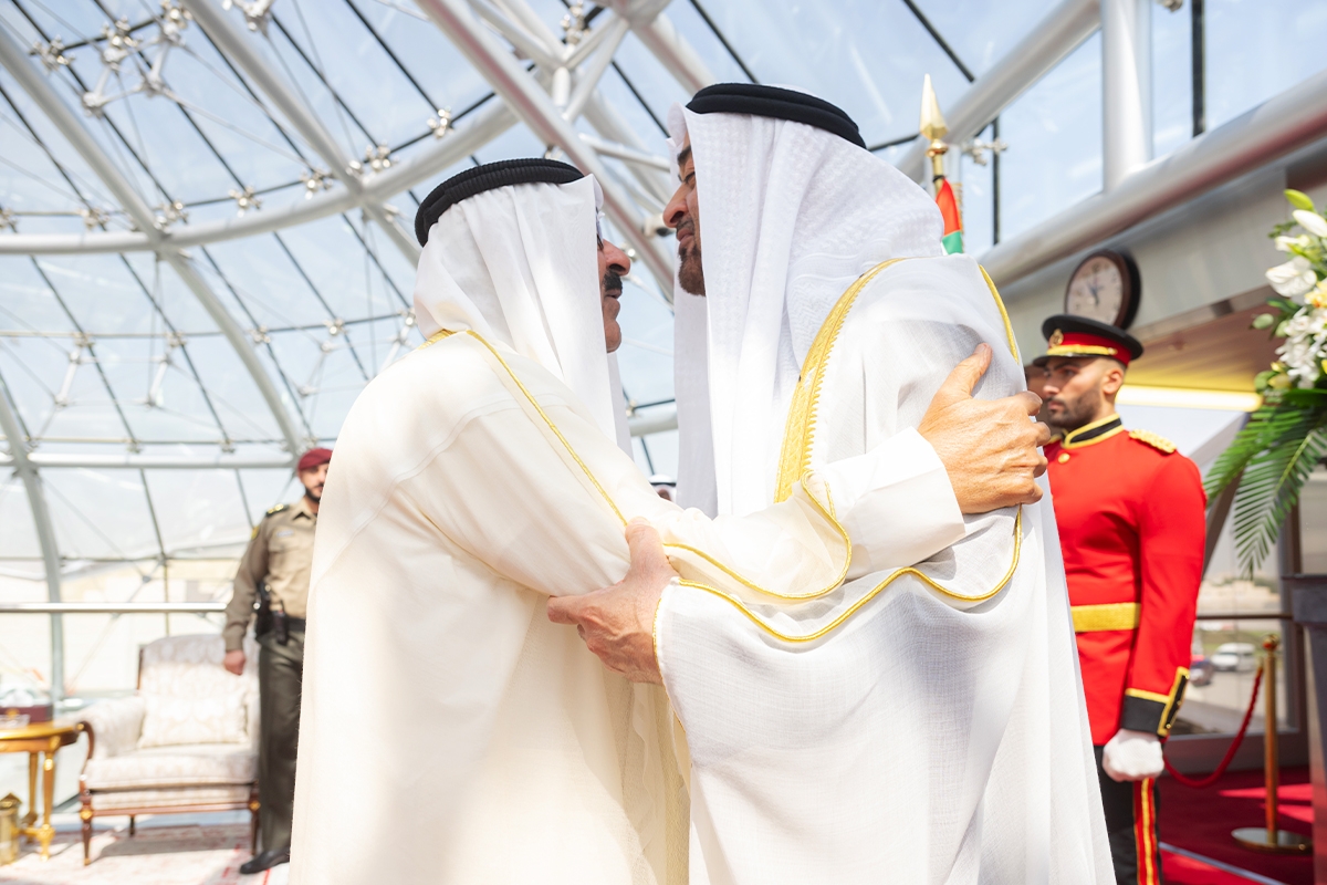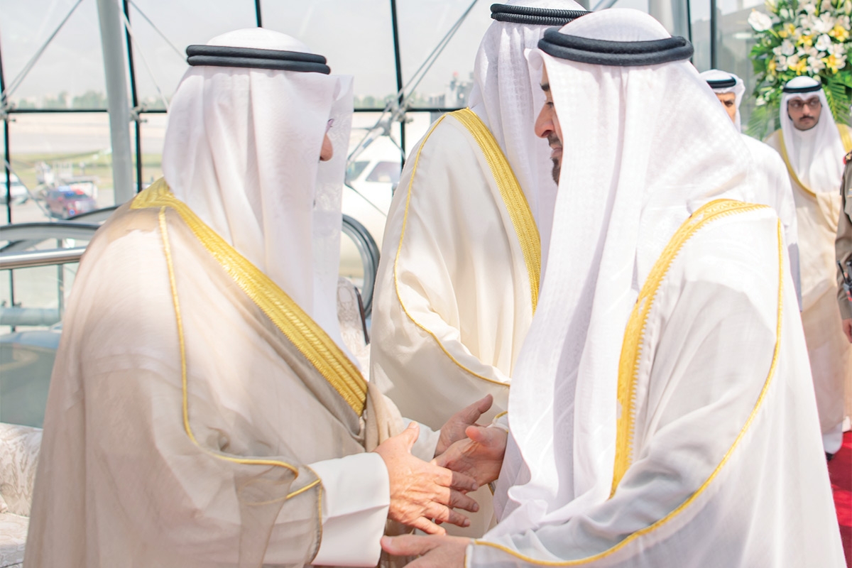 وكان بن زايد وصل إلى البلاد صباح أمس في زيارة أخوية، وكان على رأس مستقبليه على أرض المطار سمو أمير البلاد وسمو ولي العهد، كما كان في استقباله سمو رئيس مجلس الوزراء ووزير شؤون الديوان الأميري الشيخ حمد الجابر.