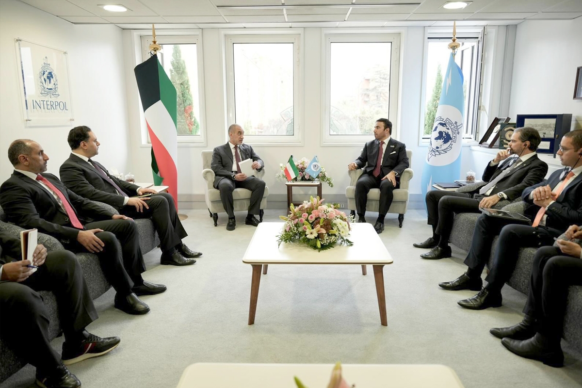 أكد النائب الأول لرئيس مجلس الوزراء وزير الداخلية، الشيخ فهد اليوسف، حرص دولة الكويت على تعزيز علاقاتها مع الإنتربول، مبينا أن الكويت حاضرة وفاعلة في مختلف المحافل، إيمانا منها بأن التعاون الدولي في المجال الأمني يشكل حجر الأساس لحماية المجتمعات من الإرهاب والجريمة المنظمة.