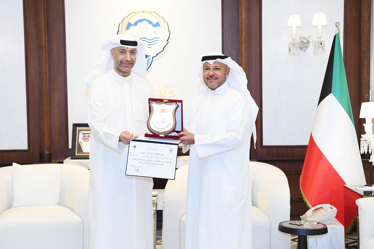 كما استقبل محافظ الفروانية، مدير منطقة الفروانية التعليمية السابق جاسم بوحمد لتكريمه على جهوده بتطوير العملية التعليمية وخدمته لأهالي المحافظة، متمنياً له التوفيق في محطته التعليمية الجديدة.