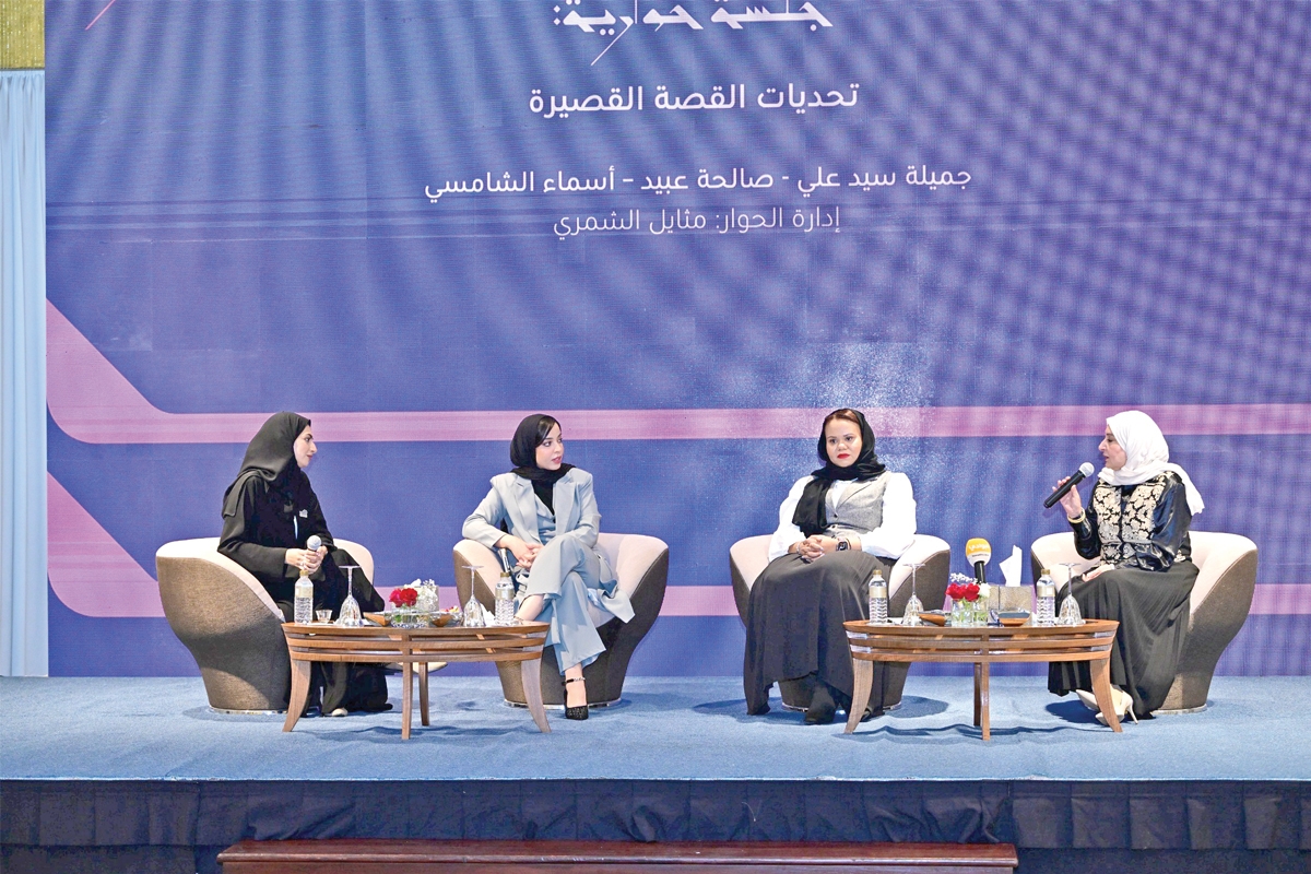 وشاركت في الجلسة الثانية (تحديات القصة القصيرة)، الروائية والكاتبة جميلة سيد علي، والكاتبة صالحة عبيد، والمدونة والكاتبة أسماء الشامسي، حيث ناقشت المشاركات أبرز الإشكالات الفنية التي تواجه هذا الفن.