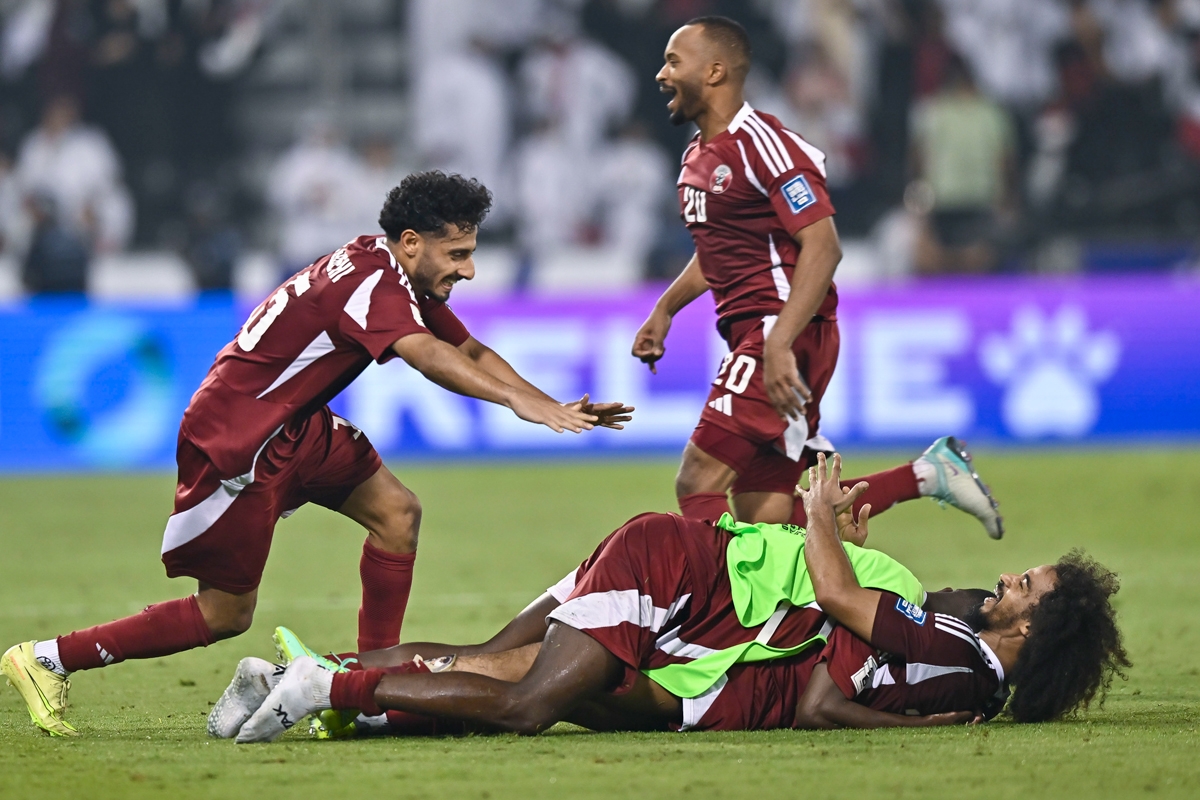 أما المنتخب القطري، فقد حقق فوزاً مثيراً على الإمارات بنتيجة 2-1 في استاد جاسم بن حمد بالدوحة، ليضمن تأهله للمرة الثانية في تاريخه، والأولى عبر التصفيات. سجل بوعلام خوخي وبيدرو ميغيل هدفي «العنابي»، الذي أكمل اللقاء بعشرة لاعبين بعد طرد طارق محمد، بينما قلص سلطان عادل الفارق للإمارات في الوقت المحتسب بدل الضائع. بهذا الفوز، تصدرت قطر المجموعة الأولى برصيد أربع نقاط، فيما تجمد رصيد الإمارات عند ثلاث نقاط، لتتجه بدورها إلى مواجهة فاصلة أمام العراق.
