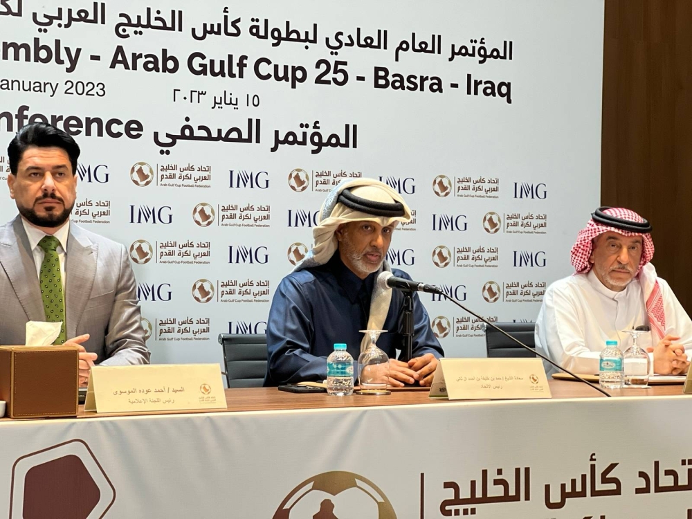 جاء ذلك، عقب انتهاء المؤتمر العام لاجتماع اتحاد كأس الخليج العربي لكرة القدم الذي عُقد اليوم الأحد بالبصرة على هامش بطولة «خليجي 25»، برئاسة الشيخ حمد بن خليفة، وحضور رؤساء الاتحادات الخليجية. وقال رئيس اتحاد كأس الخليج خلال مؤتمر صحافي: «نسعى إلى تطوير البطولة وتثبيت مواعيدها بقدر المستطاع، والجمهور العراقي كان عاملاً أساسياً في نجاح خليجي 25 بالبصرة».