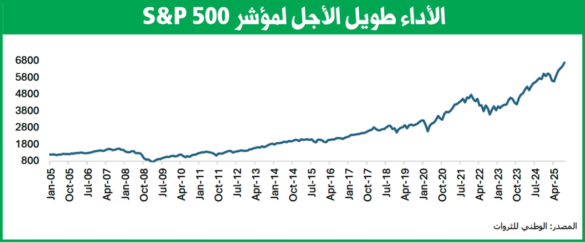 وعلى نقيض ذلك، تُظهر الأسهم سلوكاً مختلفاً تماماً، فالتقلّب قصير الأجل فيها واقع لا يمكن إنكاره، إذ تراجع مؤشر S&P 500 بنحو 57 في المئة بين أكتوبر 2007 ومارس 2009، إلا أن الأداء التاريخي عبر المدى الطويل يؤكد أن الأسهم الأميركية لطالما واصلت تحقيق عوائد حقيقية إيجابية ومستمرة.
