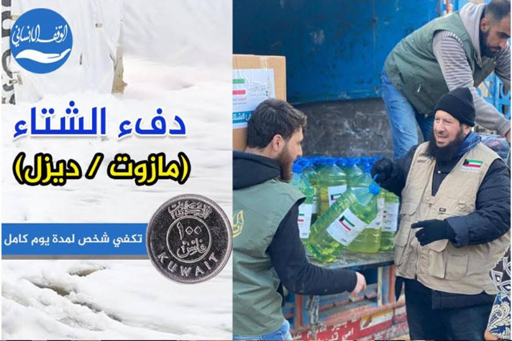 وقال رئيس مجلس إدارة الجمعية م. نصار العبدالجليل، في تصريح اليوم ، إن «الوقف الإنساني» ومع انخفاض درجة الحرارة في مناطق اللاجئين السوريين، أطلقت حملة مساعداتها الشتوية، والتي اشتملت على توزيع مواد التدفئة اللازمة والمتمثلة في «المازوت والديزل».