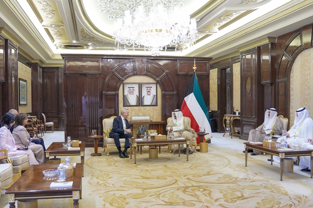 استقبل رئيس مجلس الوزراء سمو الشيخ أحمد العبدالله، في قصر بيان، اليوم، المفوض السامي للأمم المتحدة لشؤون اللاجئين فيليبو غراندي والوفد المرافق له، بمناسبة زيارته للبلاد.