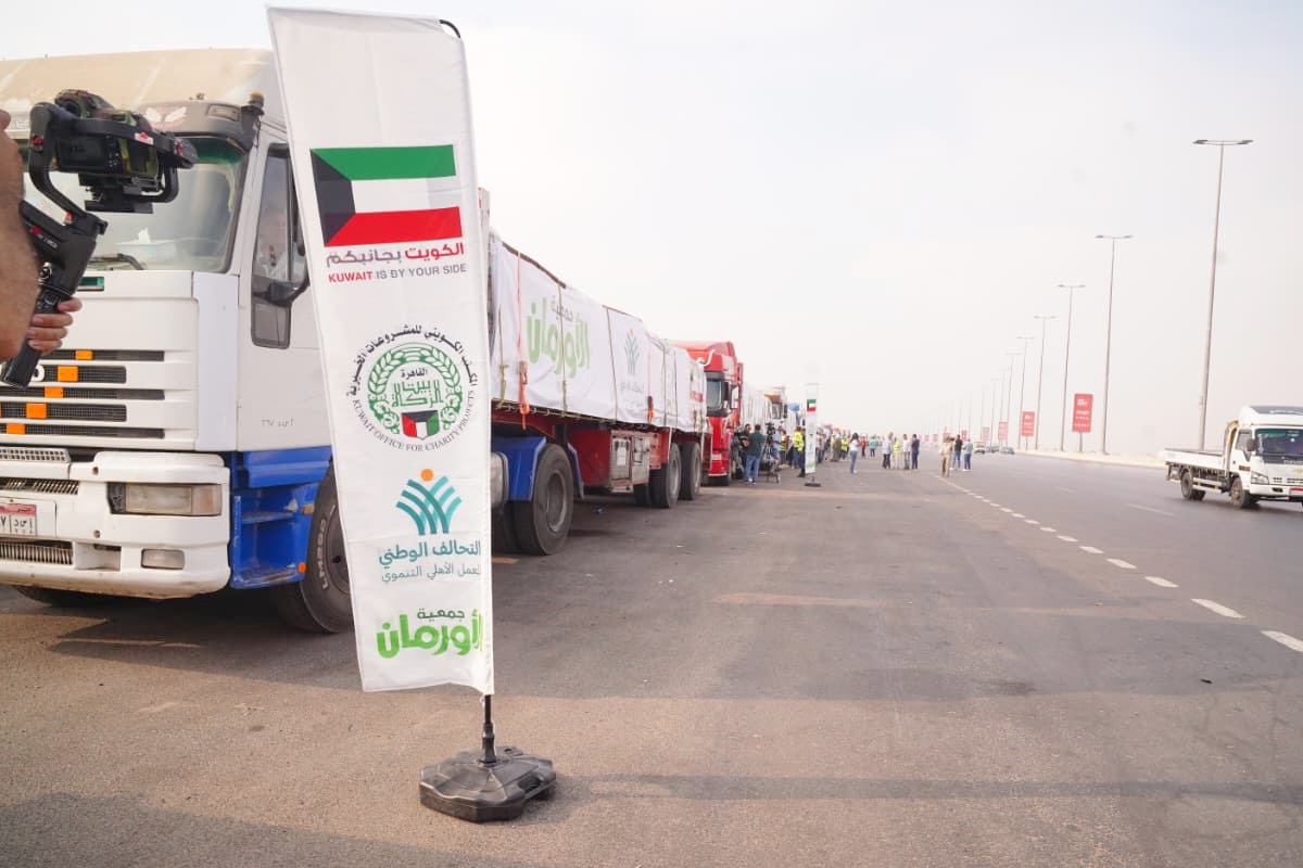 دشن المكتب الكويتي للمشروعات الخيرية في القاهرة، اليوم، قافلة مساعدات إغاثية لمصلحة الأشقاء في قطاع غزة تضم 33 شاحنة محملة بسلال غذائية ومواد أساسية أخرى.