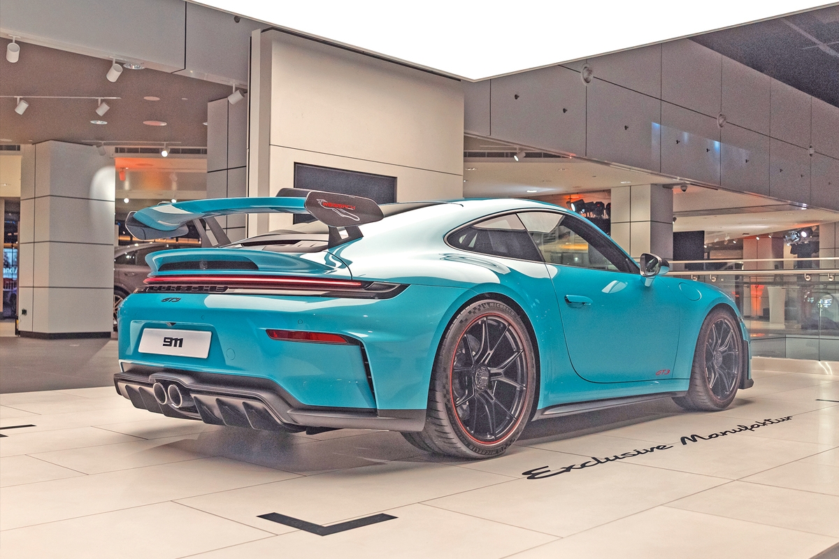 ومن أبرز محطات الأمسية كان عرض مجموعة من سيارات بورشه الأيقونية، تتقدّمها سيارة بورشه 911 جي تي 3 إكسكلوسيف مانوفكتور “Paint to Sample” باللون الأزرق إيبانيما ميتاليك، والتي أسرت أنظار الحضور بطلائها اللافت وتفاصيلها الدقيقة التي تجسّد أرقى مستويات الحرفية والتميّز.