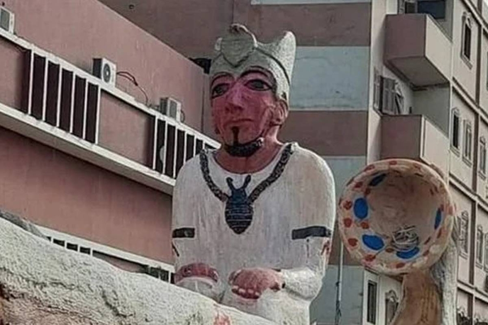 أثارت صور تمثال فرعوني مزعوم مصنوع حديثاً، في ميدان عام بمركز أبوتيج في محافظة أسيوط، بصعيد مصر، حالة من السخرية والجدل عبر «فيسبوك»، بسبب طريقة نحته الرديئة.