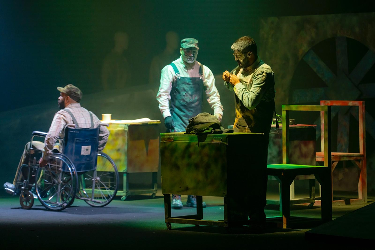 فالمسرحية تمثل تجربة ذاتية وشخصية بامتياز، تنبض برؤية ودلالات المخرج العثمان. وتدور أحداثها حول أربعة عمَّال يعيشون في مكانٍ مغلق منذ سنوات طويلة، منقطعين عن العالم الخارجي، ومن دون أن يتنفسوا الهواء الخارجي. وسبب معاناتهم يكمن في غياب الجرأة على المواجهة، إذ لا يملك أي منهم الشجاعة للذهاب إلى الشخص المسؤول والتعبير عن شعورهم بالتعب والضيق، فيكتفي كل واحد منهم بالتذمر في موقعه دون اتخاذ أي خطوة فعلية، ويمثل كل منهم إحساساً مختلفاً. وقد ظهر التناغم الجماعي بين شخصيات العمل واضحاً، فكانت الحركة متقنة، والنبرة الصوتية محسوبة، والتواصل بين الأجساد على الخشبة جزءاً من لغة العمل، لا تكلف فيها ولا افتعال. ومع استمرار الأحداث، وعندما يستوعب العُمَّال في النهاية أنه يتعيَّن عليهم اتخاذ خطوة حقيقية للخروج من دائرة الصمت والتذمر، تنبع من داخلهم مشاعر قناعة عميقة بأنهم اكتفوا، ومن هنا تبدأ رحلة التغيُّر والخروج إلى العالم الخارجي.