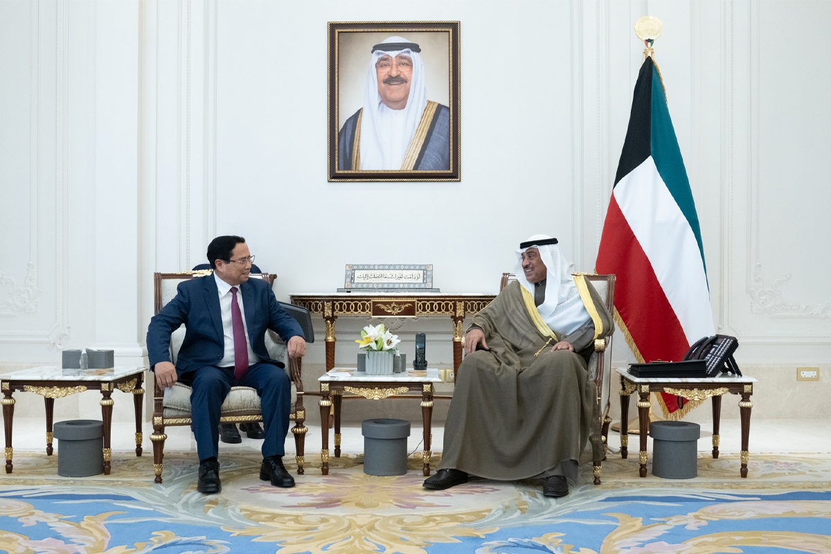 استقبل سمو ولي العهد الشيخ صباح الخالد، بقصر بيان صباح اليوم، وبحضور رئيس مجلس الوزراء سمو الشيخ أحمد العبدالله، رئيس وزراء فيتنام فام مينه تشينه والوفد المرافق، بمناسبة زيارته الرسمية للبلاد.