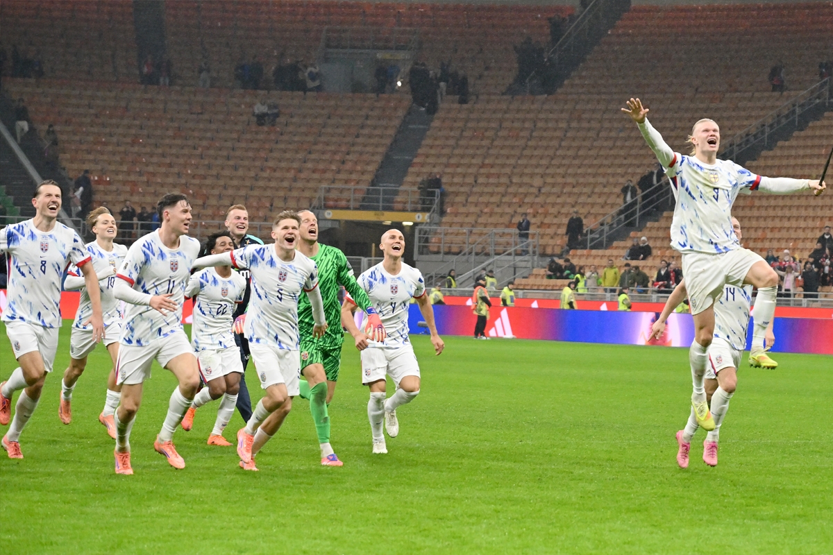 وكانت إيطاليا أمام مهمة شبه مستحيلة في مواجهة النرويج، إذ توجب عليها الفوز الأحد بفارق 9 أهداف على ضيفتها التي أنهت التصفيات بالعلامة الكاملة بتحقيقها انتصارها الثامن بفضل ثنائية لإرلينغ هالاند، بينها الفوز على إيطاليا ذهاباً في أوسلو بثلاثية نظيفة.