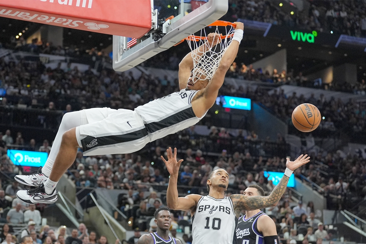 فاز سان أنتونيو سبيرز على ضيفه ساكرامنتو كينغز 123 - 110 رغم افتقاده لجهود نجمه العملاق الفرنسي فيكتور ويمبانياما وتعرض ستيفون كاسل لإصابة، في دوري كرة السلة الاميركي للمحترفين (أن بي ايه).