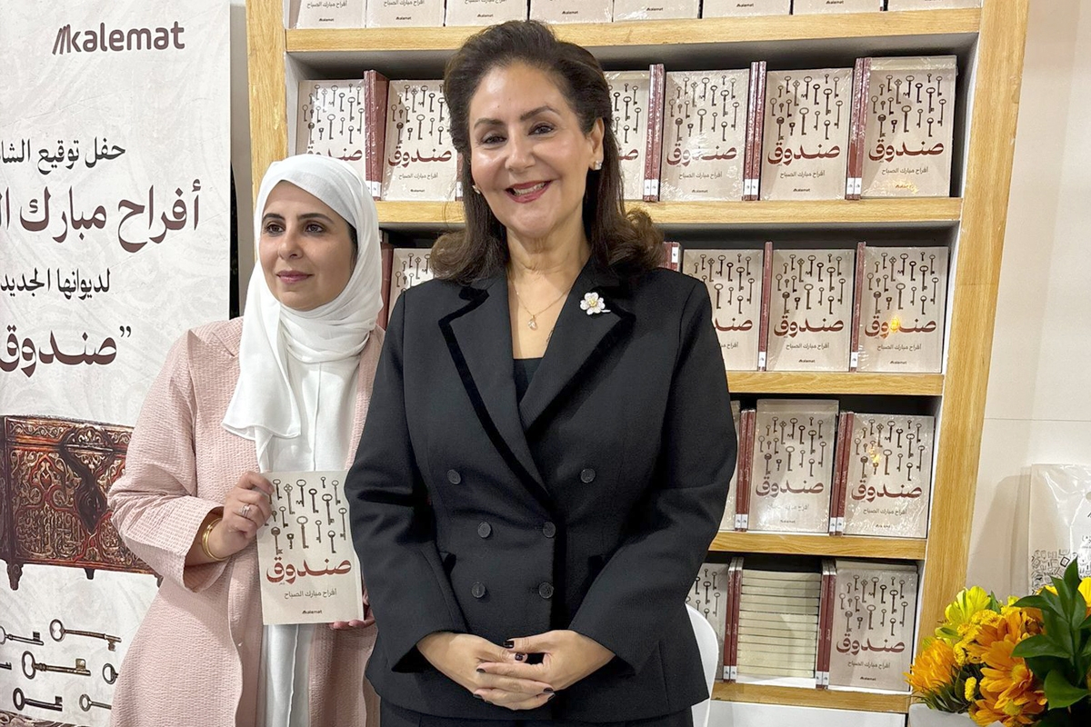 في أمسية تضوعت بالشعر وعبق الكلمات، احتفت الشاعرة الشيخة أفراح الصباح، مساء أمس الأول، بتوقيع ديوانها الجديد «صندوق»، في جناح دار كلمات، ضمن فعاليات معرض الكويت الدولي للكتاب، وكان المشهد أشبه بدفء قصيدة تُتلى؛ إذ توافد الجمهور ليملأ المكان توقاً لتوقيعها، وكأنه يبحث عن مفاتيح جديدة لفتح صناديق الحكايات.