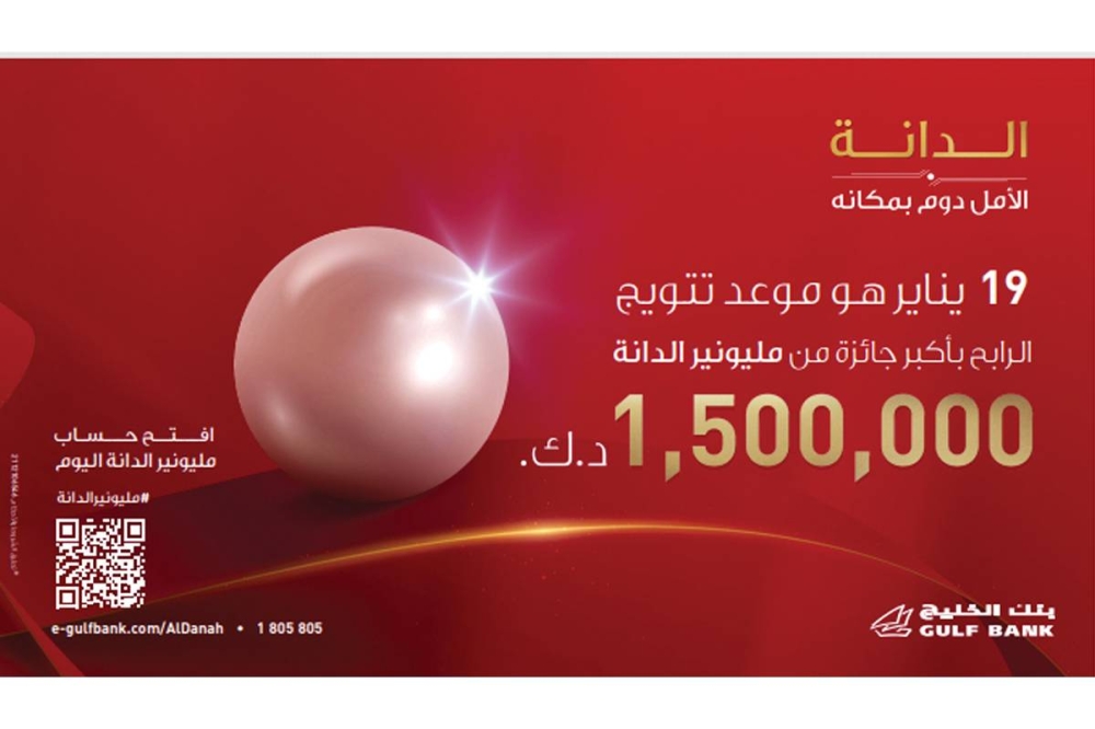 ويواصل «مليونير الدانة»، حساب السحوبات والتوفير الأكثر شعبية في الكويت، صنع المليونيرات منذ انطلاقته عام 1998، إذ يفخر بنك الخليج بإضافة مليونيرين جديدين إلى قائمة المليونيرات في البلاد سنوياً، إذ تم الإعلان عن الرابح الأول بجائزة 1.000.000 دينار في السحب نصف السنوي في يوليو الماضي.