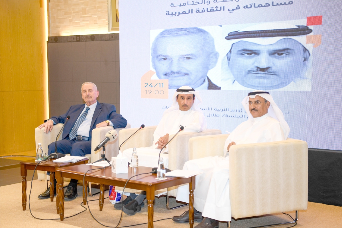 أقيمت الجلسة الخامسة والختامية من ندوة «أحمد مشاري العدواني... شاعر الوطن وأيقونة الثقافة العربية»، وحملت عنوان «مساهماته في الثقافة العربية» قدمها وزير التربية الأسبق د. سعود الحربي، والباحث والإعلامي حمزة عليان، وأدارها الباحث والكاتب طلال الرميضي.