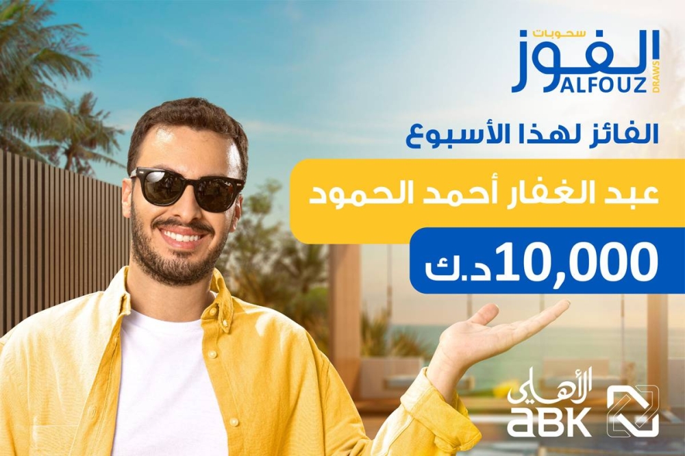 أعلن البنك الأهلي الكويتي فوز عبدالغفار أحمد الحمود في السحب الأسبوعي لحساب «الفوز» للجوائز، بجائزة نقدية قدرها 10000 دينار، والذي أقيم تحت إشراف وزارة التجارة والصناعة، وتم الإعلان عن اسم الفائز يوم الاثنين 16 يناير 2023.