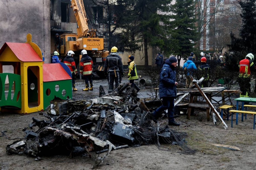 في أكبر خسارة بشرية لأوكرانيا من بدء العزو الروسي، لقي وزير الداخلية دينيس مناستيرسكي، ونائبه الأول يفغيني ينين حتفهما في حادث سقوط مروحية من طراز إيرباص «إتش 225» في بروفاري في العاصمة كييف.