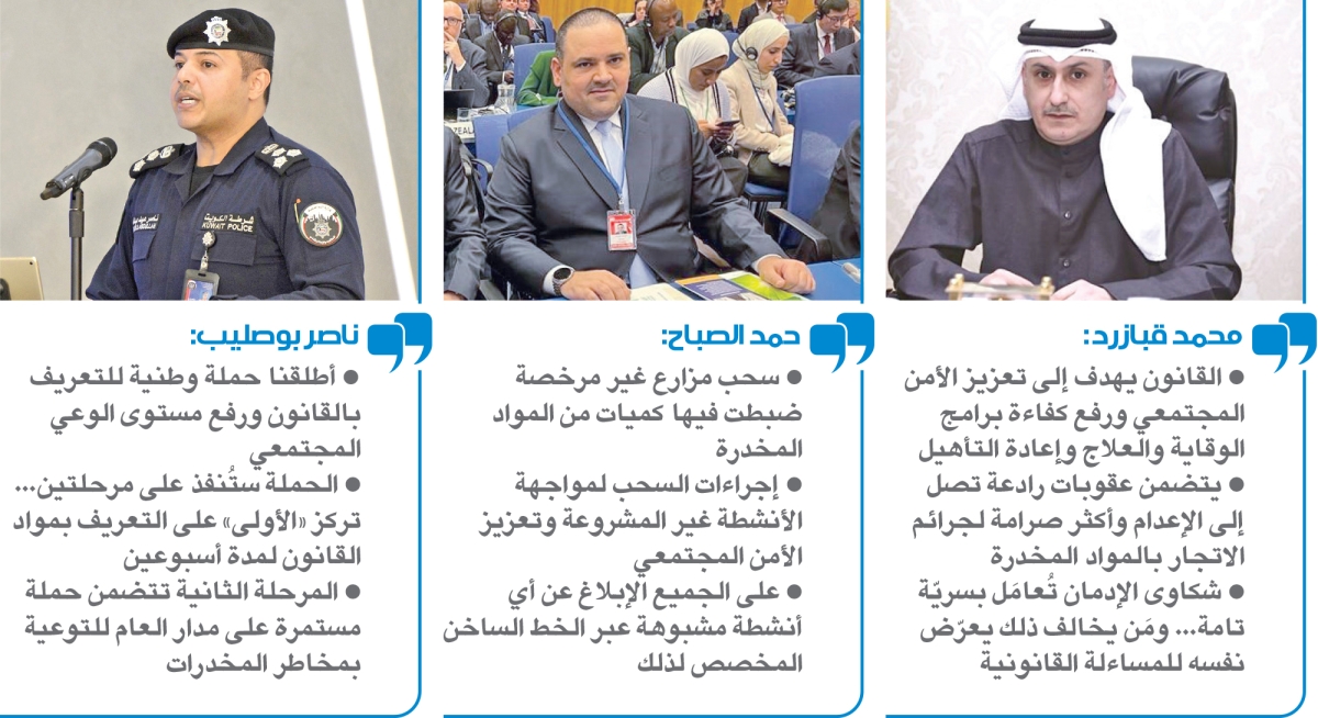 ولفت قبازرد إلى أن القانون يهدف إلى ضمان مساعي الدولة لتعزيز الأمن المجتمعي، ورفع كفاءة برامج الوقاية والعلاج وإعادة التأهيل، في ظل ما يشهده العالم من توسُّع في شبكات الاتجار وظهور أنماط جديدة للمواد المخدرة والمؤثرات العقلية، مشيراً إلى أن قانون المخدرات الجديد يتضمن عقوبات رادعة تصل في بعض مواده إلى الإعدام، ومؤكدا أن هذا التشريع يأتي في إطار مواجهة أكثر صرامة لجرائم الاتجار بالمواد المخدرة وحماية المجتمع من مخاطرها المتزايدة.