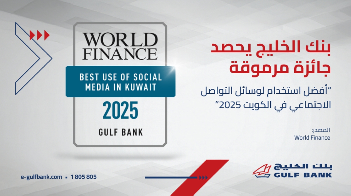 في إنجاز جديد يعكس ريادته الرقمية، توجت مجلة World Finance بنك الخليج بجائزة «أفضل استخدام لوسائل التواصل الاجتماعي في الكويت لعام 2025»، تقديراً لتواجده الفاعل وظهوره المميز عبر منصات التواصل المختلفة.