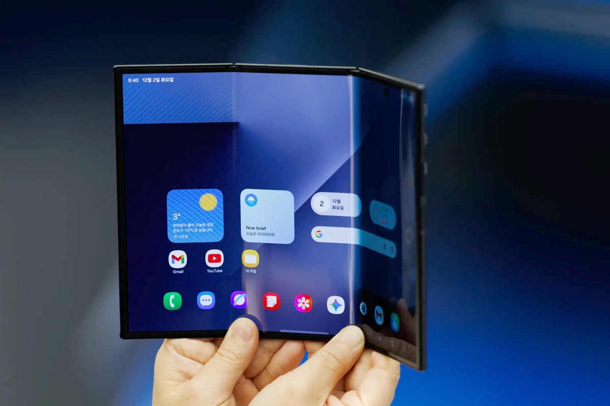 كشفت شركة "سامسونغ" اليوم عن جهازها المحمول الجديد Galaxy Z TriFold، وهو أول هاتف قابل للطي ثلاثياً من إنتاجها، وسيطرح بالأسواق 12 الجاري بكوريا الجنوبية. وتوقعت الشركة، في بيان نشرته «إفي» اليوم، أن يصل الهاتف للسوق الأميركي بالربع الأول من 2026، قبل إطلاق منافستها آبل لهاتفها القابل للطي. وأكدت «سامسونغ» أن الهاتف يتميز ب«تصميم نحيف».