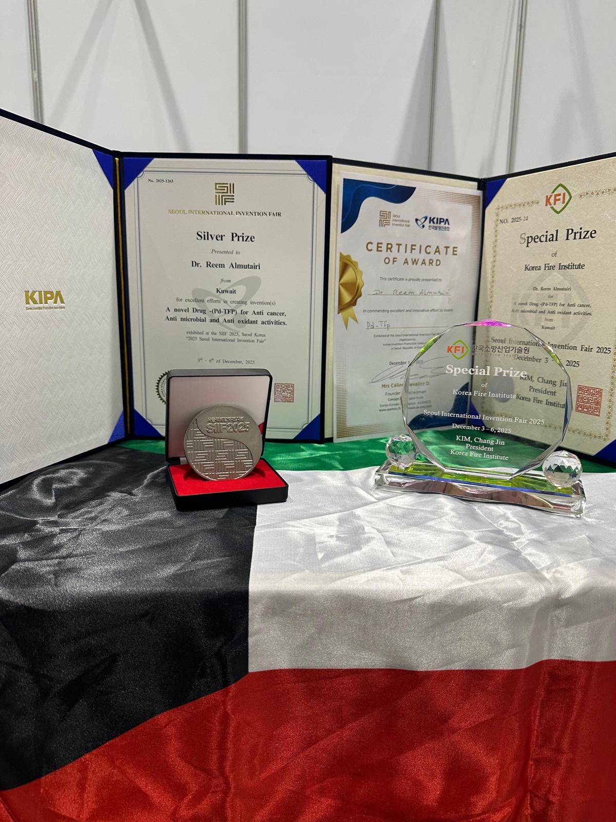 وأوضحت المطيري، التي تعمل اختصاصي طب نووي في مستشفى الجهراء، أنها نالت جائزة خاصة من الجمعية السويسرية الكورية عن الاختراع نفسه، كما توجت بالميدالية الفضية خلال معرض «آيسف 2025»، أحد أبرز معارض الابتكار والاختراع في آسيا والعالم، لذات السبب.