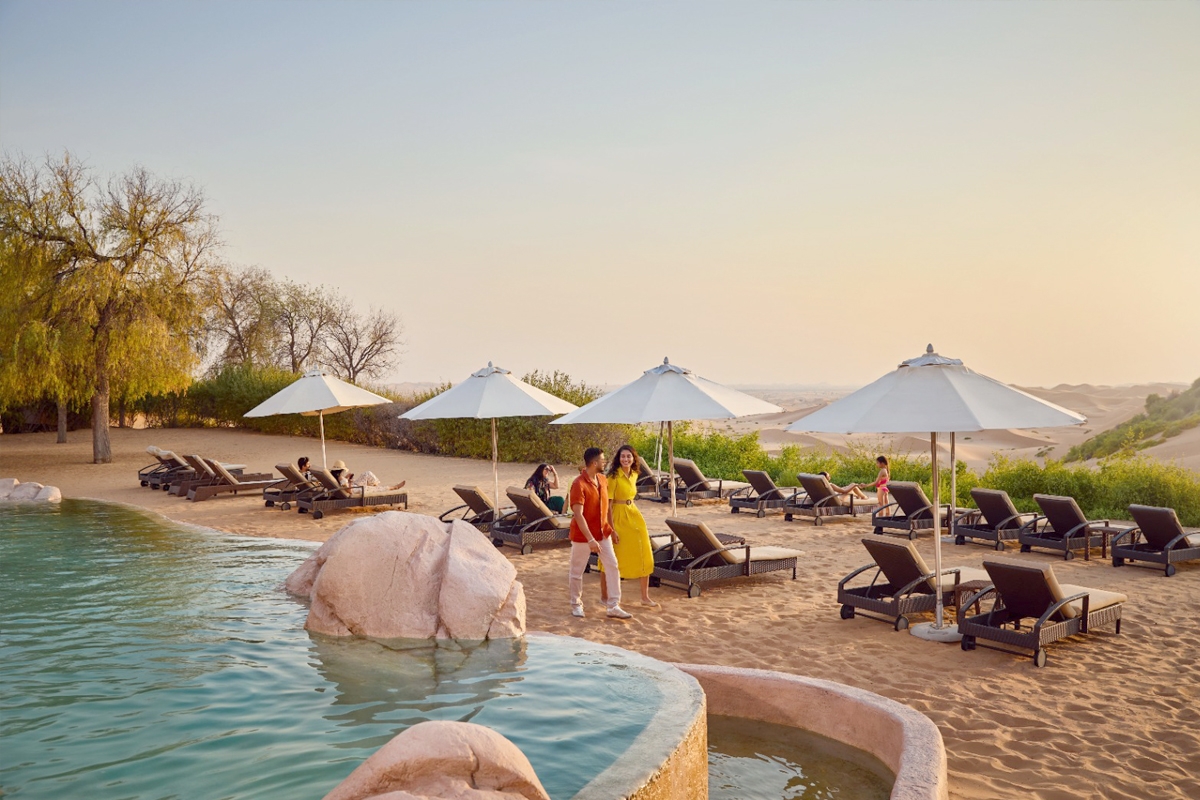 وتستمر المغامرة حتى تصل إلى نزل قمر الصحراوي، المنتجع البيئي الفاخر الذي يقدم تجربة تنسجم مع روح الصحراء المفتوحة، حيث يتجلى جمال العين بأبهى صوره.