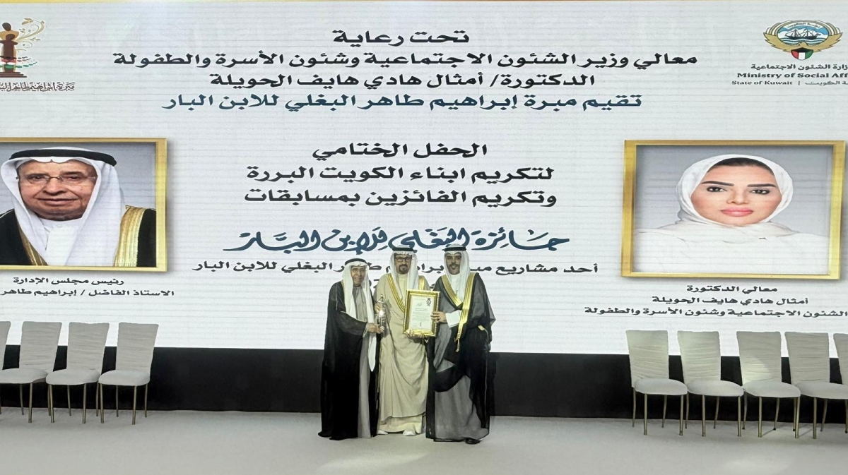 نظّمت مبرة إبراهيم طاهر البغلي للابن البار، أمس الأول، الحفل الختامي لتكريم الفائزين في مسابقات الجائزة للعام الحالي، برعاية وزيرة الشؤون الاجتماعية وشؤون الأسرة والطفولة، د. أمثال الحويلة.