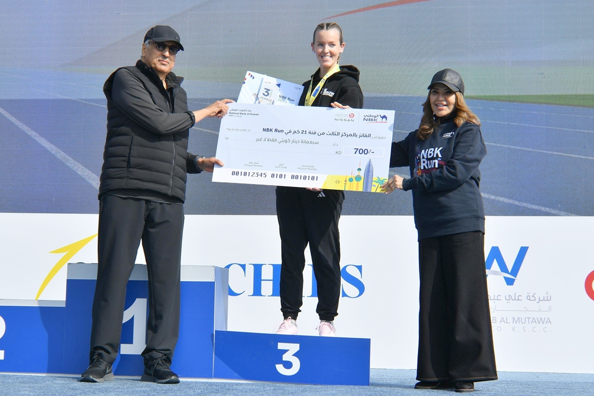 توّج بنك الكويت الوطني في ختام NBK Run لهذا العام 18 فائزاً عن الفئات المشاركة (نساء ورجال) في السباق، حيث تم تكريم الفائزين بالمراكز الثلاثة الأولى عن مسافة 21 كم بجوائز نقدية بلغت 1200 و1000 و700 دينار على التوالي، بينما حصل الفائزون بالمراكز الأولى عن مسافة 10 كم على جوائز نقدية بلغت 1000 و700 و500 دينار على التوالي، أما الفائزون بالمراكز الأولى عن مسافة 5 كم فقدمت لهم جوائز نقدية بقيمة 500 و400 و300 دينار على التوالي.