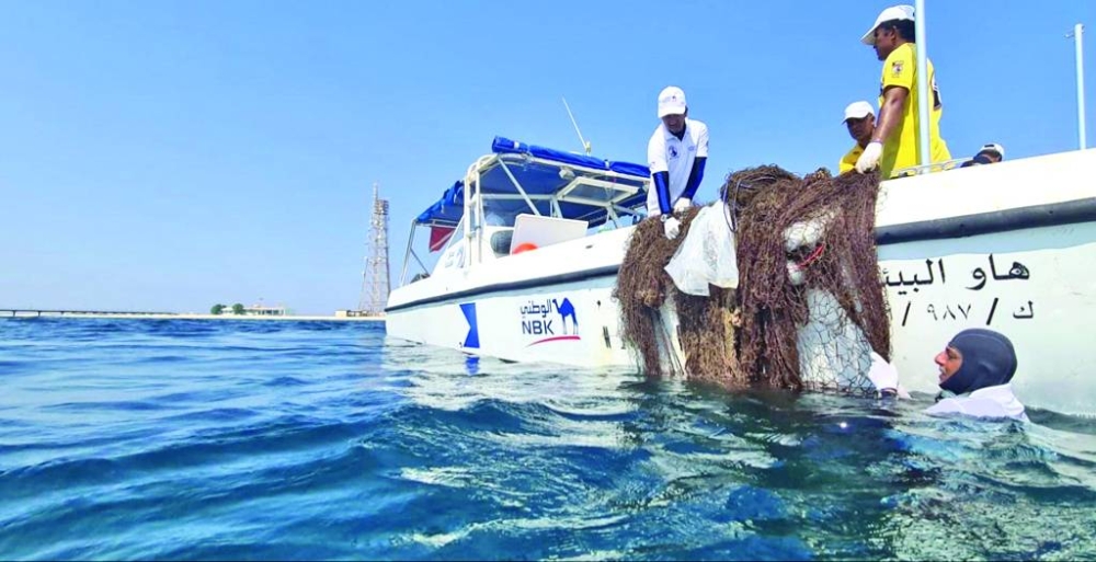 حملة «كونا» و«الغوص» ترفع طنَّي مخلفات بلاستيكية من ساحل الأبراج