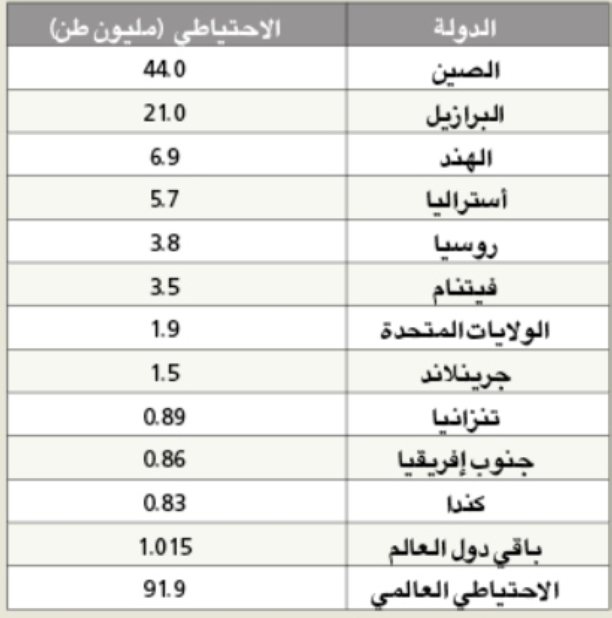 الدول الأكثر امتلاكاً لاحتياطيات المعادن الأرضية النادرة