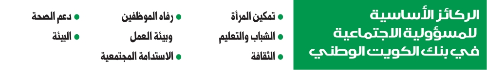 ويواصل «الوطني» خلال عام 2022 إطلاق ورعاية البرامج الاجتماعية الهادفة في مجالات الصحة ورعاية الأطفال والتنمية الاجتماعية والبيئية والرياضية والتوعوية ليكرس بذلك موقعه الريادي كأكبر مساهم في مجال المسؤولية الاجتماعية في الكويت بهدف ترسيخ أسس التنمية المستدامة تماشياً مع خطة التنمية الوطنية، ونجح البنك في تحقيق نتائج نوعية فيما يتعلق بجهوده تجاه تحقيق الاستدامة في العديد من الخدمات والمساهمات والمبادرات التي شملت مختلف الجوانب البيئية والصحية والاجتماعية والتعليمية والرياضية.