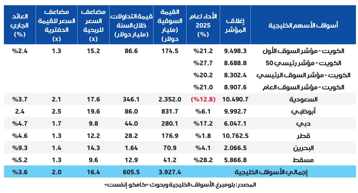 أداء الأسواق الخليجية عام 2025
