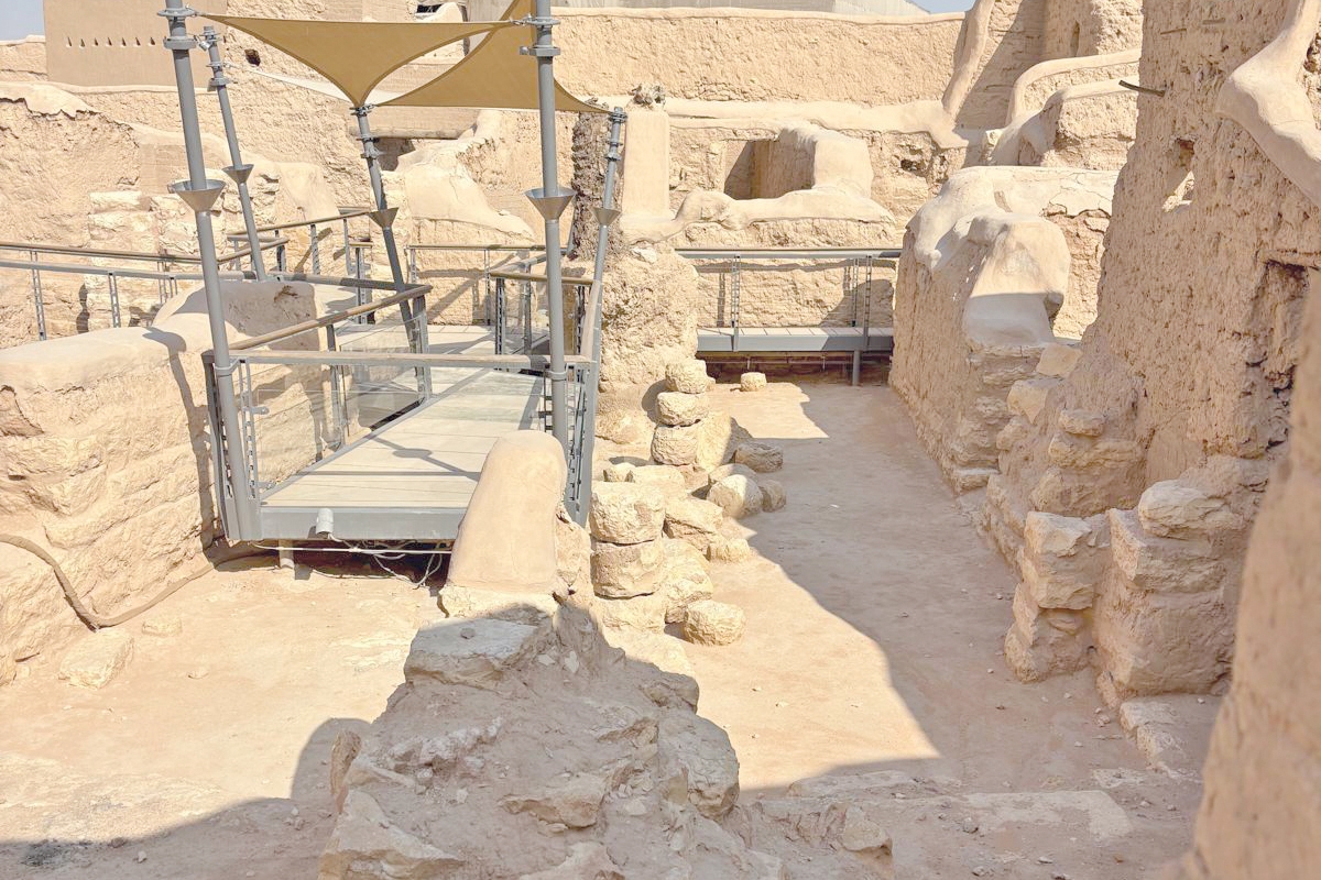 تصعد إلى بيوت وقصور الدرعية وفي جولة ممتعة وبشوارع ضيقة، لكنها مغروسة بشباب مدرب للمساعدة والشرح وتقديم الخدمات بصورة راقية، وأحياء تلمع في سماء مشرقة بالنظافة والرقي.