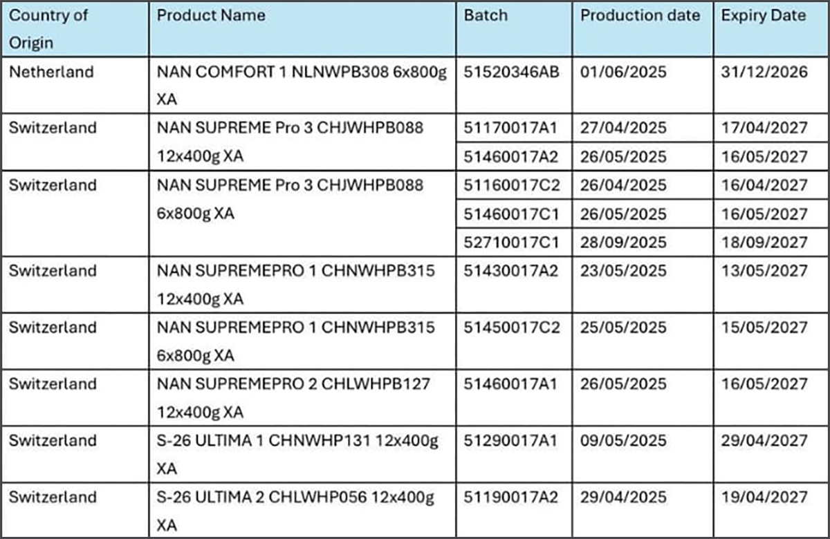 وأضافت أن «الغذاء والتغذية» وبالتنسيق مع الشركة، قامت بحجب واسترجاع معظم الدفعات المتأثرة من الاخطار من السوق المحلي احترازياً، مع الاستمرار في استكمال الإجراءات التنظيمية المعتمدة بالتعاون مع الهيئة.