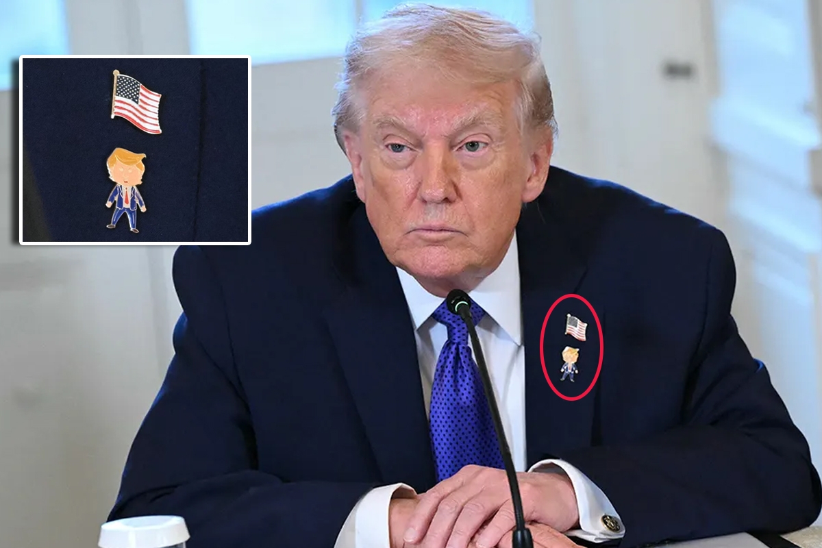 وقالت «سكاي نيوز»، اليوم، إن الدبوس، الذي يصوّر ترامب بشكل كرتوني تحت دبوس العلم الأميركي التقليدي، ظهر وسط أجواء رسمية، لكنه أثار ضحك الحضور.