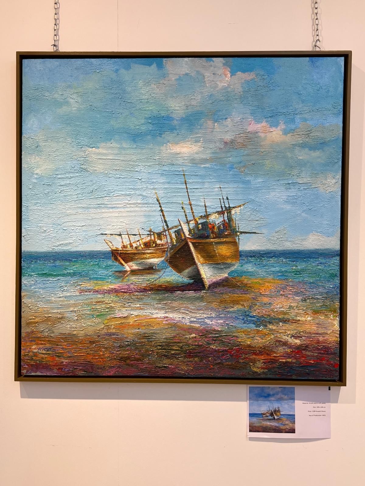 أما الفنان منير الحجي فشارك بمجموعة من اللوحات التي تجسد ملامح التراث الخليجي المشترك بين الكويت والسعودية وقطر والبحرين، مسلطاً الضوء على صناعة السفن الخشبية بمختلف أنواعها، والتي اشتهرت بها الخليج عبر تاريخها البحري. تجدر الإشارة إلى أن هذه الأعمال تأتي ضمن سلسلة فنية قدمها الفنان حجي منذ عام 1991، واتسمت بأسلوب يقترب من الواقعية، حيث تظهر السفن في لوحاته راسية على السيف، بمراسيها، وكأنها متوقفة لالتقاط أنفاسها في مشهد يوحي بالهدوء والاستراحة.