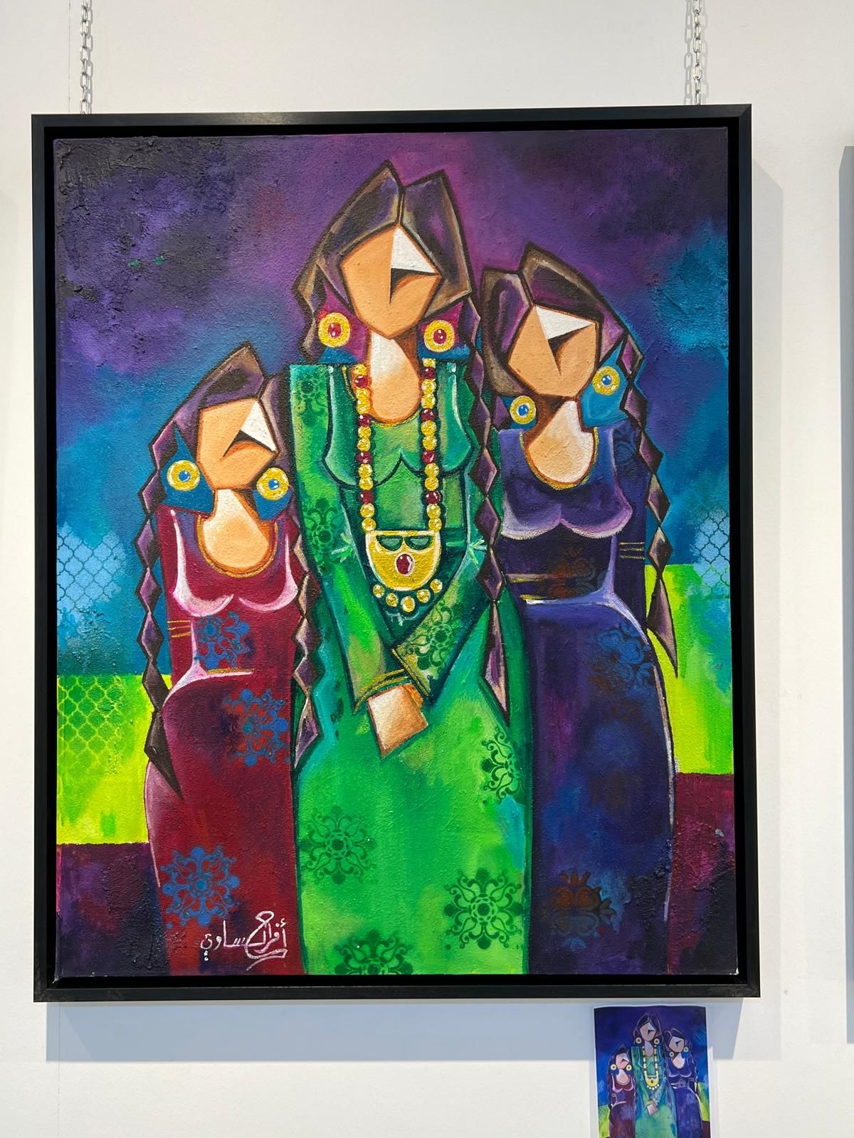 وعبرت الفنانة سعاد عبدالواحد عن سعادتها بالمشاركة، مؤكدة أن معرض «بصمة خليجية» يعتبر معرضا جماعيا مشتركا يجمع فنانين من السعودية والكويت، وأوضحت أنها شاركت بـ11 عملا فنيا متنوعا في المقاسات، تناولت جميعها موضوع النخلة، التي تعد رمزا لهوية التراث السعودي، لاسيما في المناطق الصحراوية، كما تمثل الكرم والعطاء، وتعتبر عنصرا متجذرا في حياة الناس بشكل عام.