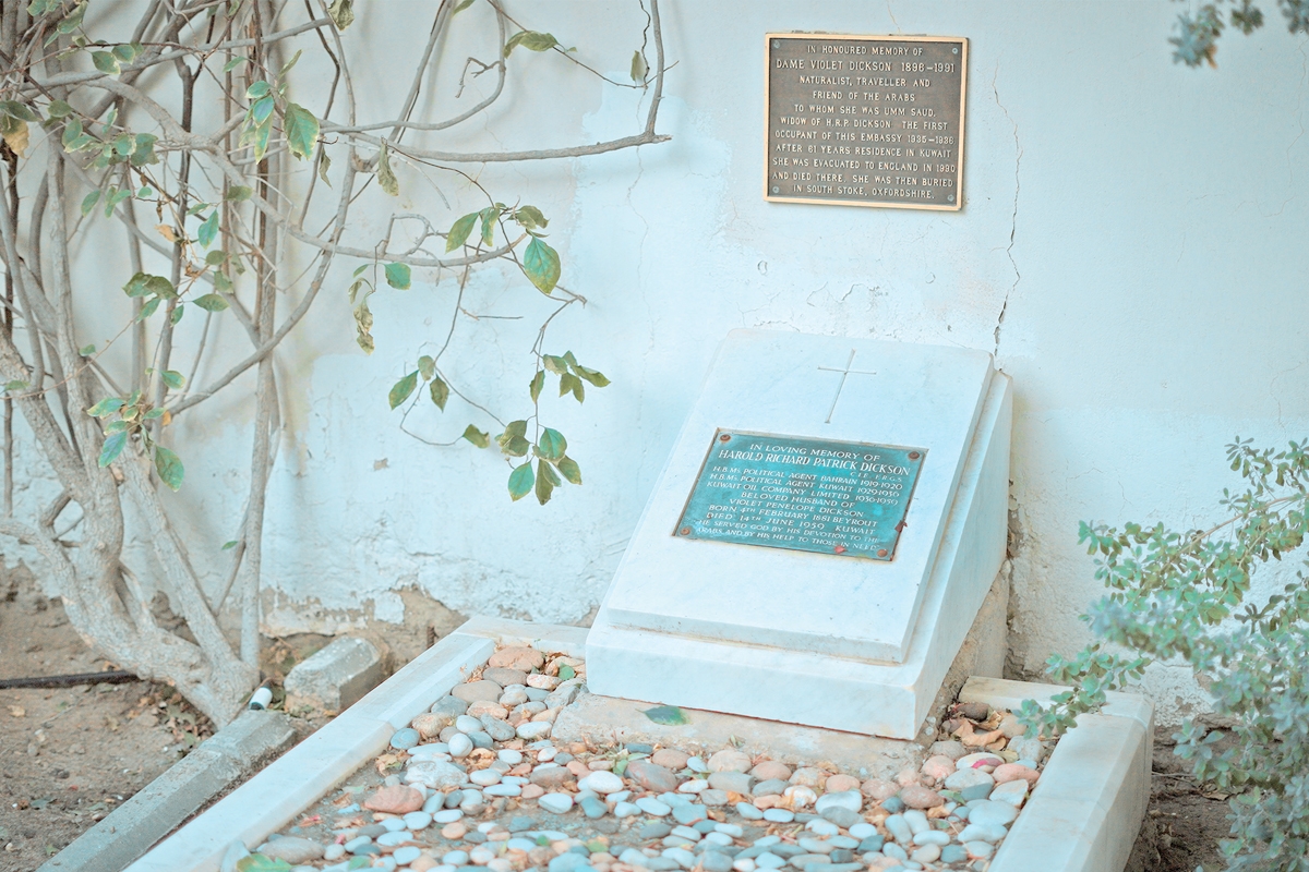 وفي هذا المبنى الشامخ يوجد قبر الكولونيل هارولد ريتشارد باتريك ديكسون القائم بأعمال بريطانيا بالكويت في القرن الماضي، بين عامي 1929 و1936، وبعد التقاعد استمر في العمل بالكويت في شركة نفط الكويت حتى وفاته عام 1959 عن عمر 87 عاماً ودفن في مقبرة بمدينة الأحمدي، وفي عام 1990 عندما فجّر صدام الآبار تأثرت القبور من تسرب النفط، فتم نقل رفاته من الأحمدي إلى السفارة البريطانية.