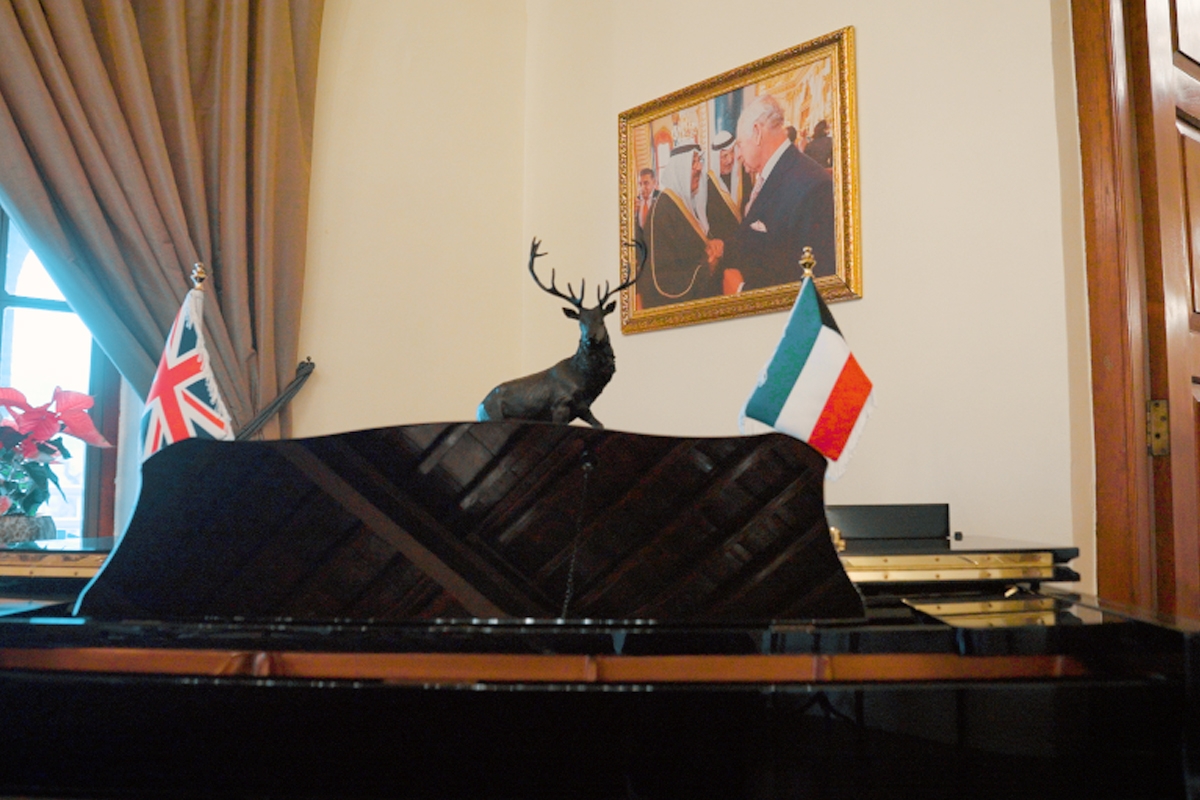 أما الدور الأرضي في المبنى فخاص بالإدارة وسكرتارية السفارة فيما الطابق العلوي يسكن فيه السفير وعائلته وفيه جناح خاص لكبار الضيوف والغرف سُميت بأسماء جزر الكويت وتوجد غرفة الملكة إليزابيث.