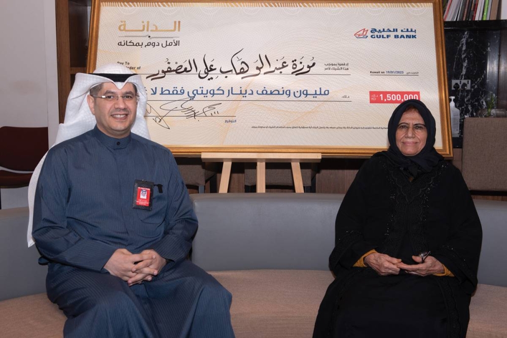 استقبل بنك الخليج موزة عبدالوهاب علي العصفور، الرابحة بالجائزة الكبرى في سحب حساب مليونير الدانة، البالغة قيمتها 1.5 مليون دينار، والذي جرى منذ أيام، وسط متابعة واسعة من الجمهور على قنوات التواصل للبنك، وإذاعة 360 إف إم، وذلك بإشراف وحضور ممثلي وزارة التجارة والصناعة وشركة آرنست آند يونغ.