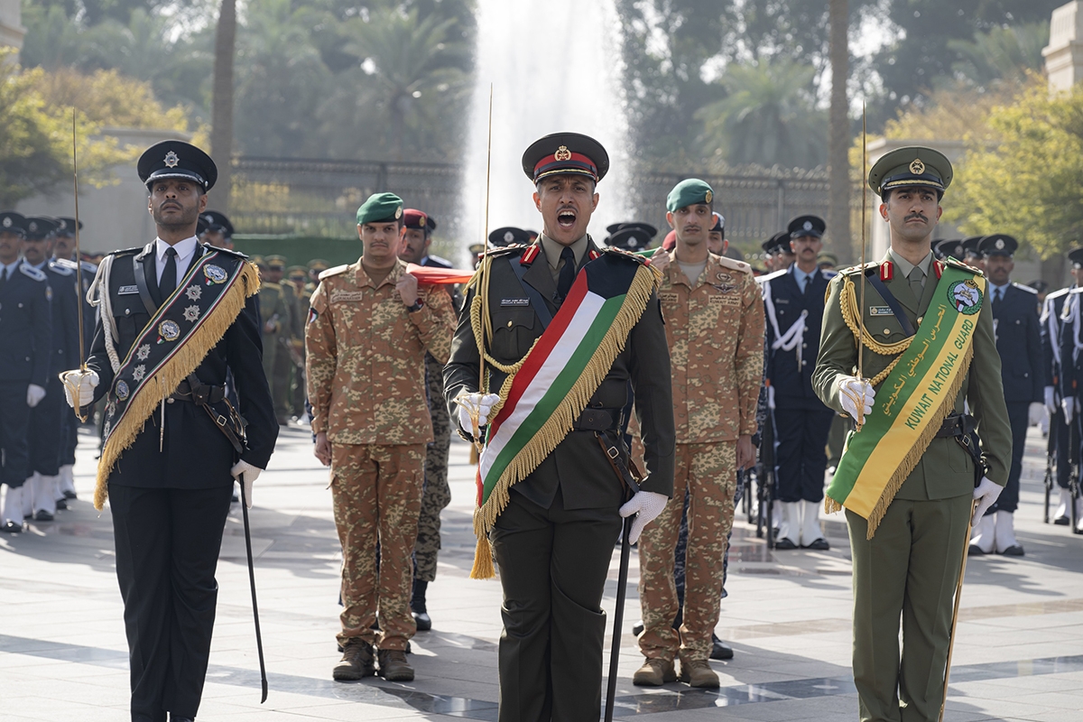 تحت رعاية وحضور صاحب السمو أمير البلاد الشيخ مشعل الأحمد الجابر الصباح احتفل بقصر بيان صباح اليوم بمراسم رفع العلم وذلك إيذاناً ببدء الاحتفال بالأعياد الوطنية للبلاد.