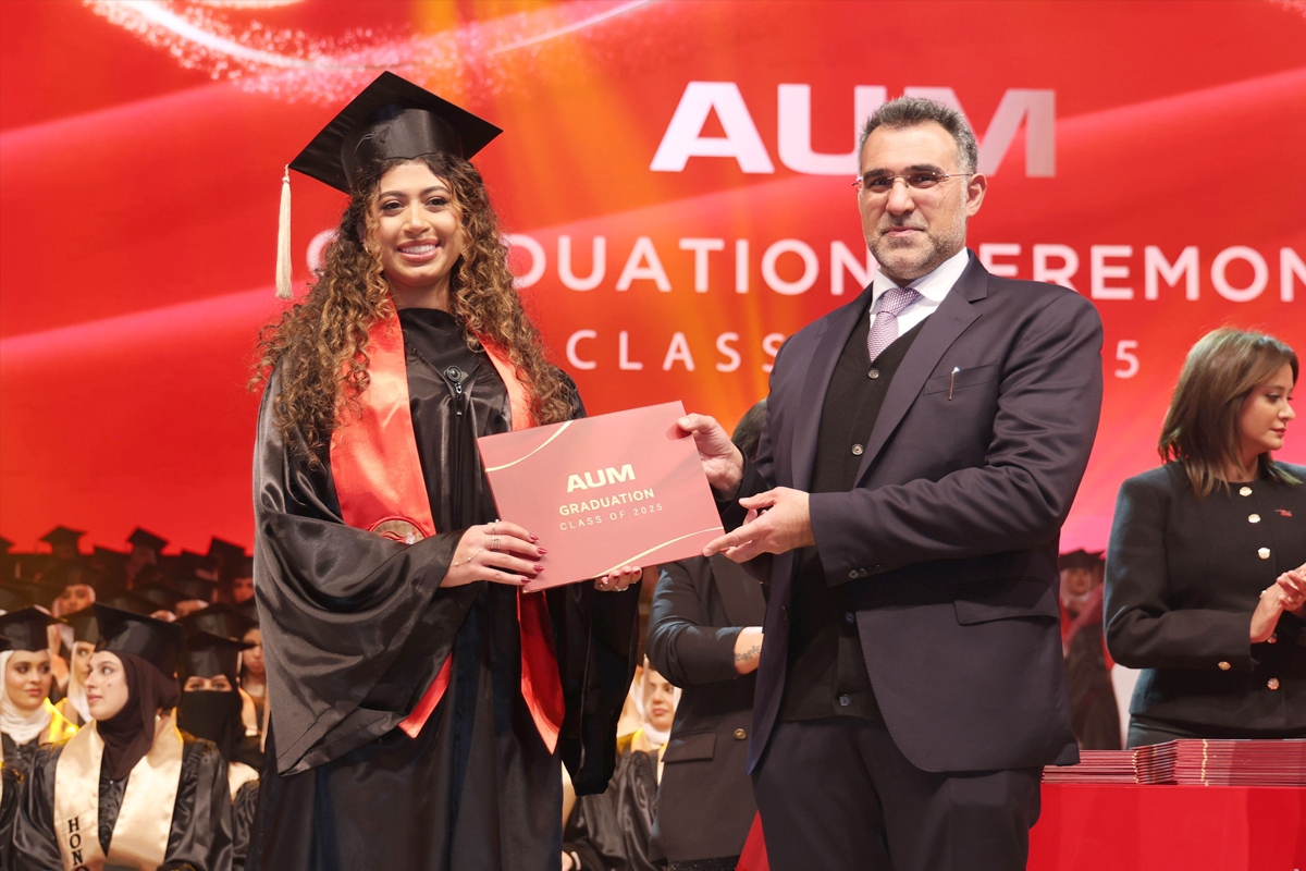 وأكدت الخرّيجة جوري السريّع فخرها بانتمائها إلى AUM، قائلة: «أفخر بانتمائي لجامعة يقودها أشخاص يمتلكون رؤية حقيقية، رؤية تتجاوز مجرد التعليم لتشكيل قادة قادرين على الابتكار والتأثير الإيجابي في العالم. في AUM، ليست المعرفة وحدها ما تعلمناه، بل كيفية التفكير والإبداع، وتحويل التحديات إلى فرص، وصقل شخصياتنا لنصبح مستعدين لمستقبل عملي مليء بالتميز. علاقتنا مع AUM لا تنتهي بالتخرج، فهي جزء من هويتنا، ورفيقنا الدائم في كل خطوة نحو التقدم والنجاح».