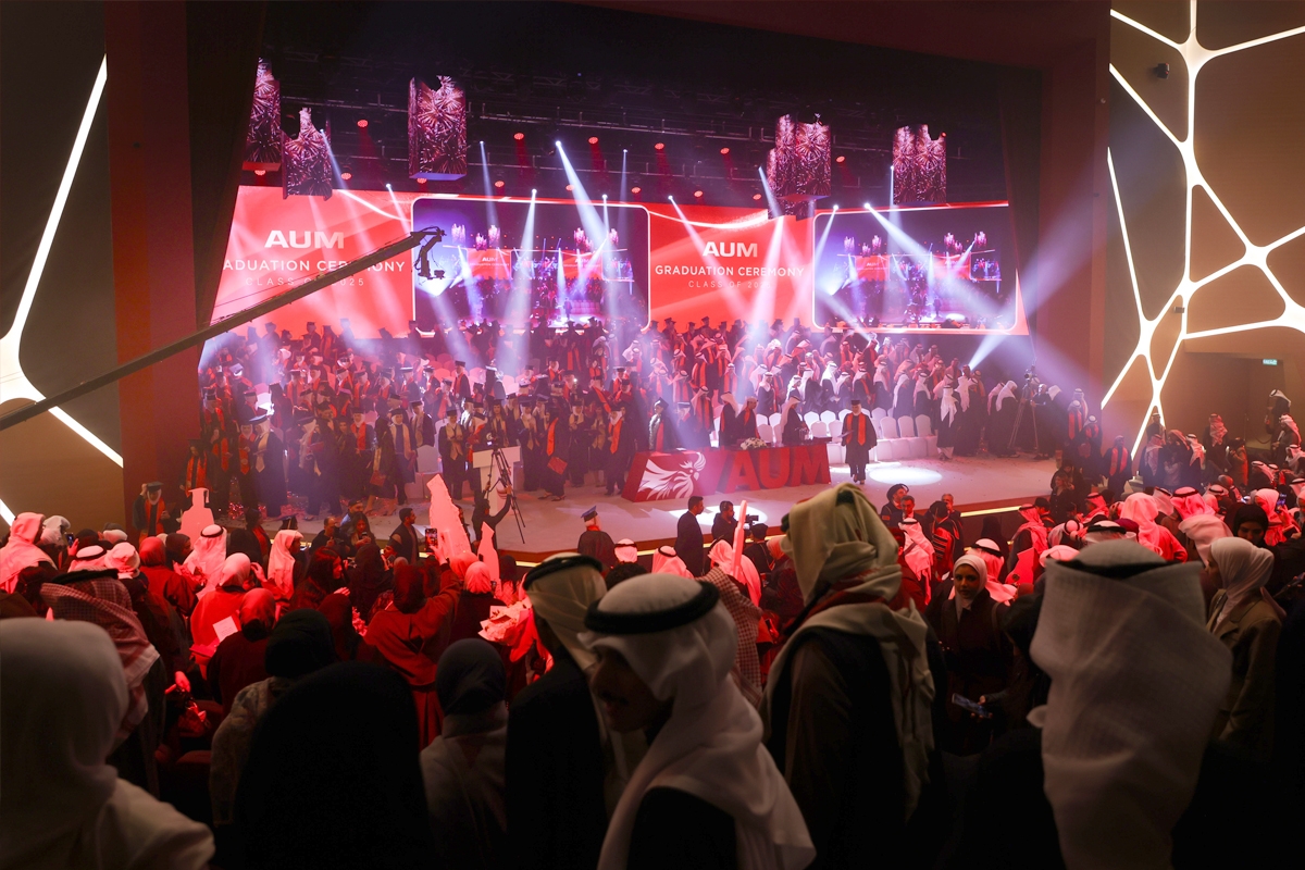 احتفلت جامعة الشرق الأوسط الأمريكية (AUM) بتخريج دفعة عام 2025 من كليتي الهندسة وإدارة الأعمال، وذلك من خلال حفلات أُقيمت على مدار أسبوع في مركز AUM الثقافي داخل الحرم الجامعي، بحضور رئيس مجلس أمناء الجامعة، فهد العثمان، ورئيس مجلس إدارة شركة هيومن سوفت القابضة، طارق العثمان، ورئيس AUM، د. جورج اليحشوشي، إلى جانب أعضاء الهيئتين الأكاديمية والإدارية وأولياء الأمور.