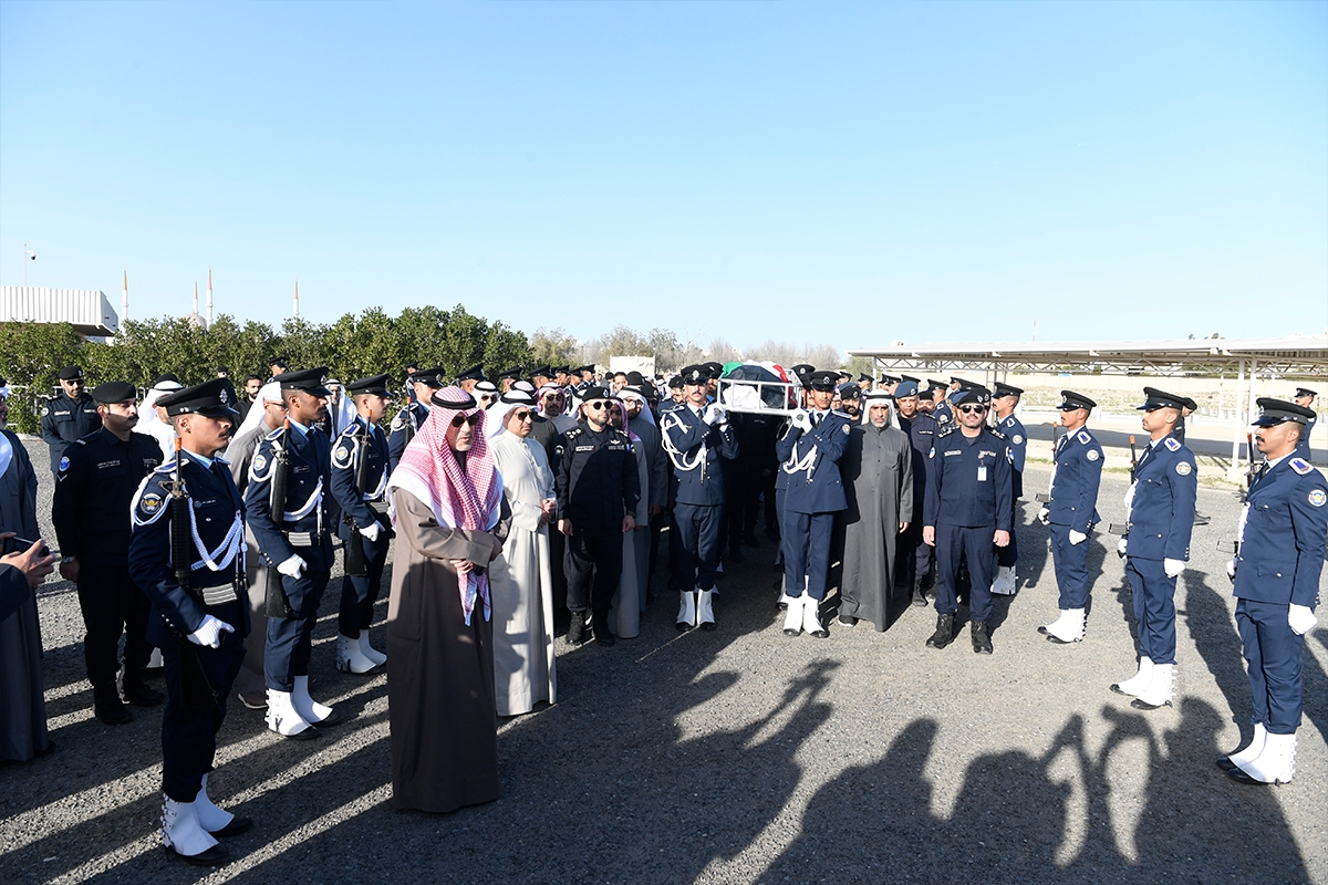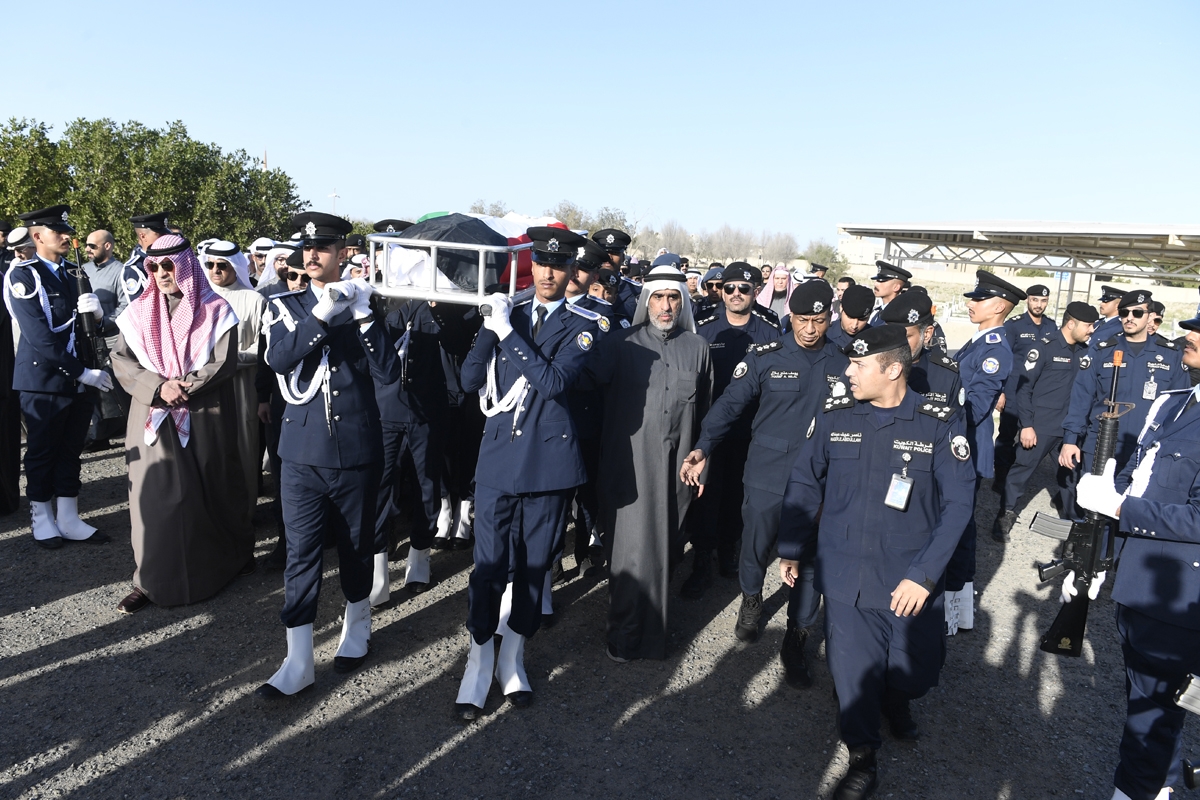 وسلم اليوسف إلى ذوي الشهيد علم دولة الكويت الذي تم وضعه على جثمانه وأكد أن إصابة الشرف أثناء تأدية عمله تجعله بإذن الله شهيداً، وهذه أعلى مراتب التضحية في سبيل الوطن، سائلاً المولى عز وجلّ أن يجمعه مع الأبرار والشهداء.