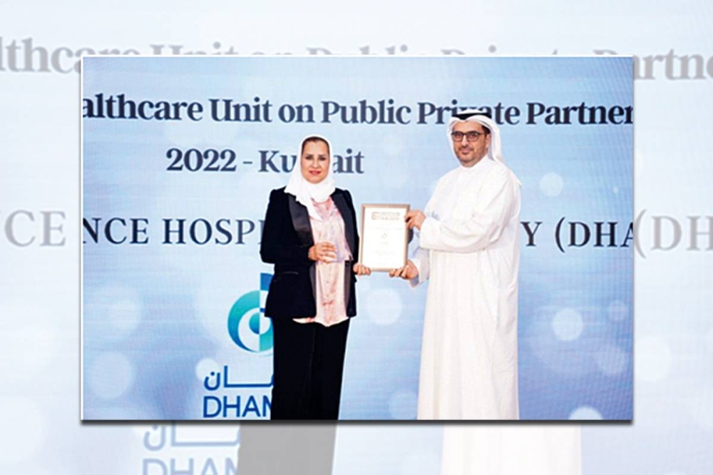 أعلنت شركة مستشفيات الضمان الصحي (ضمان) حصولها على جائزة أفضل شركة رعاية صحية ناشئة بالشراكة بين القطاعين العام والخاص، ضمن حفل جوائز مجلة بيزنس تابلويد السنوي لعام 2022، تقديراً للدور الذي تلعبه «ضمان» في دعم القطاع الصحي بالكويت.